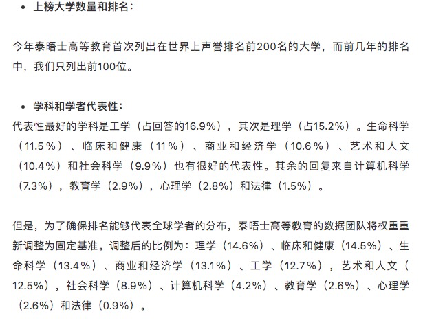 首次列出世界声誉最高的前200位大学,前几年的排名只列出前100位